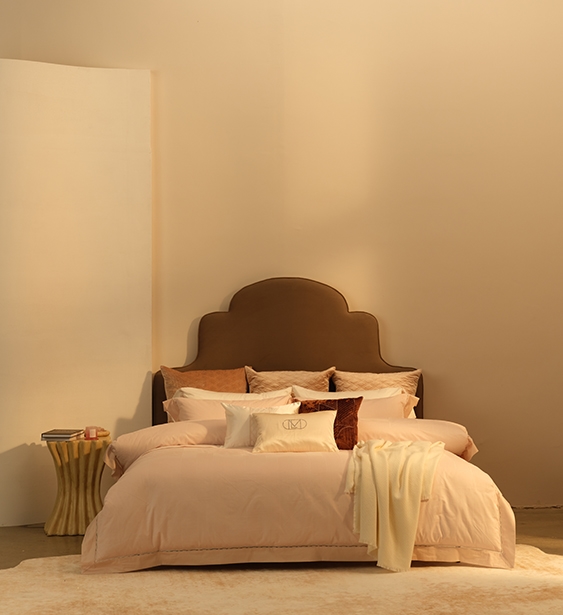 這款產(chǎn)品選用了厚重磅棉作為面料,質(zhì)感扎實(shí),觸摸起來(lái)能感受到滿滿的踏實(shí)感。溫柔優(yōu)雅的粉色,能讓臥室的氛圍瞬間變得溫馨又浪漫。提花花型由線形排列組合而成,巧妙地將線與面結(jié)合,通過(guò)疏密的組合變化,營(yíng)造出一種靈動(dòng)又富有韻律的感覺(jué),仿佛是在靜謐的空間里奏響一曲優(yōu)雅的樂(lè)章。為了呼應(yīng)花型,我們特意選用了線形的白色鏤空花邊,花邊與花型相互映襯,和諧統(tǒng)一,每一處細(xì)節(jié)都彰顯著精致與用心。