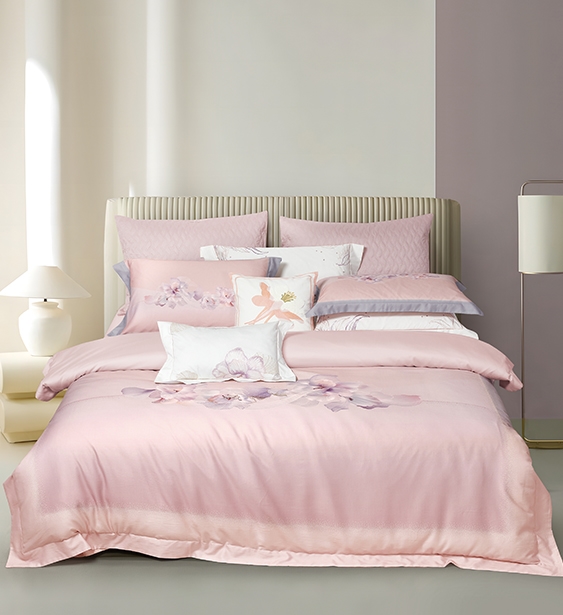 精選艾陽絨印花面料,大平網(wǎng)定位印刷技術(shù)在床面中央綻放盛大百合花簇、花瓣在光影間舒展,