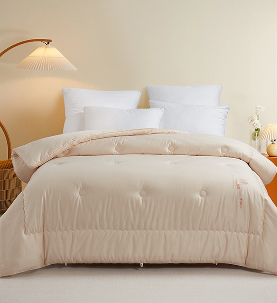 天絲棉面料,天絲與棉的黃金配比,既有棉的透氣舒適性,又有天絲的順滑與光澤感,面料中含有羊絨蛋白精華成分,可以在水面時滋潤肌膚,面料經(jīng)過碳素磨毛工藝處理,手感更軟糯,更柔綿。填充選用帶保暖效果的暖姜纖維,利用姜中的姜酚提取物加入到纖維中制成暖姜纖維,使得 姜酚融入到每根纖維,均勻分布,纖維呈咖色,有開口袋檢測口,可以看到纖維,貨真價實,是新一季的保暖型聚能發(fā)熱纖維。被面上精美刺繡,使用了溫變線色,時尚美觀,獻給追求品質(zhì)的你